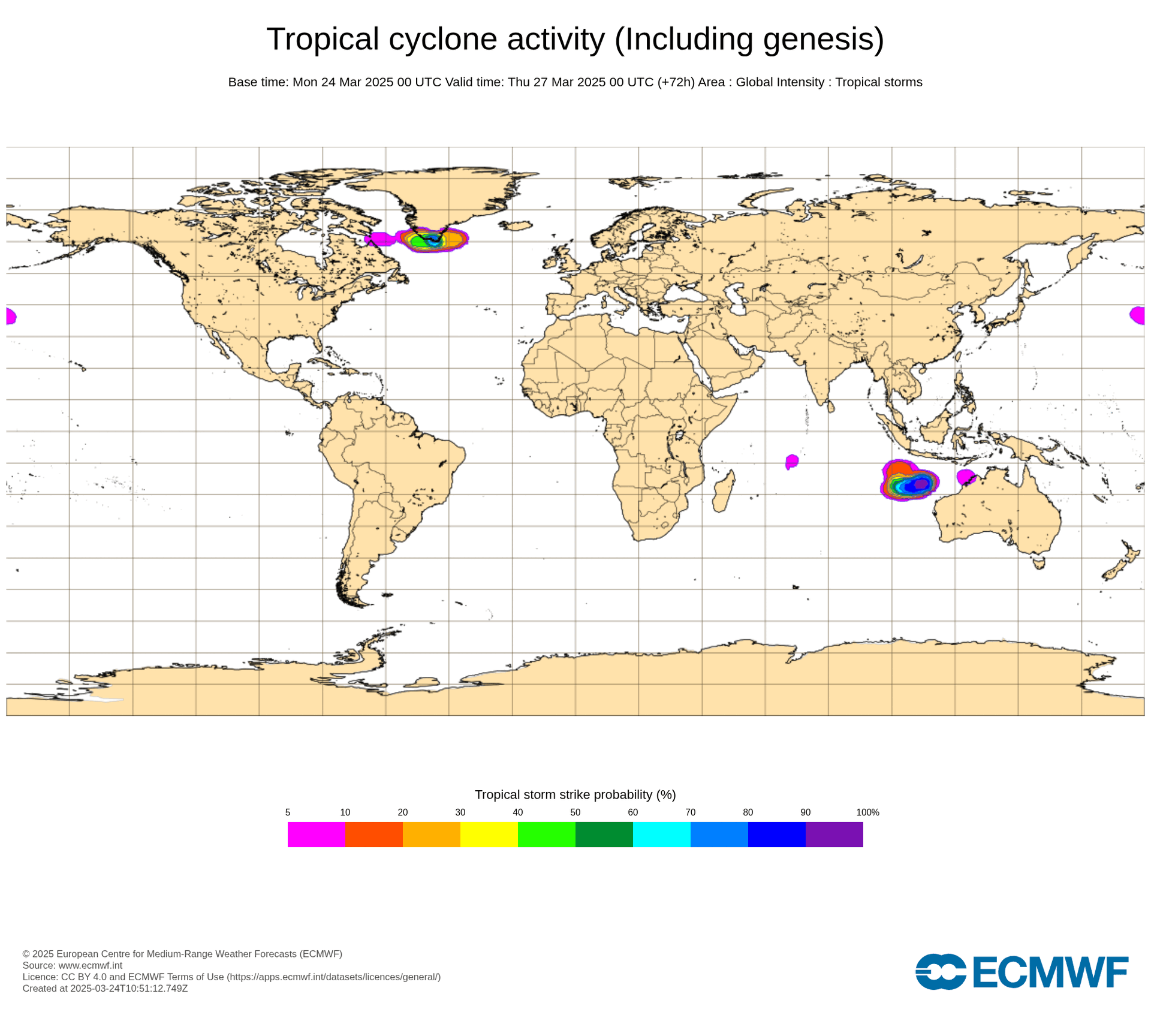 The ECMWF Tropical Cyclone Genesis Probability product takes a longer-term approach, providing forecasts for a 3-10 day period. Unlike NOAA’s 48-hour TCFP, which is designed for immediate operational decision-making, ECMWF’s forecasts help meteorologists identify broader trends in cyclone development. 17)